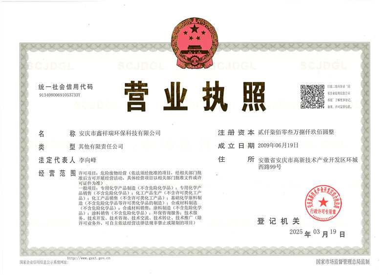 安慶市鑫祥瑞環(huán)??萍加邢薰荆ㄒ韵潞?jiǎn)稱“鑫祥瑞環(huán)保”)坐落于安慶高新區(qū),成立于2009年,主要從事廢有機(jī)溶劑的資源化綜合利用和濕電子化學(xué)品研發(fā)生產(chǎn)業(yè)務(wù)。為高新技術(shù)企業(yè)、省專精特新企業(yè)。